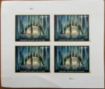 With this new Priority Mail Express stamp, the United States Postal Service celebrates the winter beauty of the Grand Island Ice Caves in Lake Superior. Located near Munising on Michigan??s Upper Peninsula, Grand Island is marked by massive sandstone bluffs. Impressive in any season, they are especially dramatic in winter when lake water seeps into the crevices and caverns, forming magnificent ice curtains and icicles that hang like stalactites from ceilings. The stamp art features a colorful illustration of how one of these ever-changing ice caves might appear from the inside looking out toward the west at sunset. Art director Greg Breeding designed the stamp with original art by Dan Cosgrove