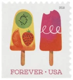 The 2018 Frozen Treats issues are a nod to these famous ice pops and were also the United States?? first scratch-and-sniff Stamps ?C ??evok[ing] a sweet summer scent.??